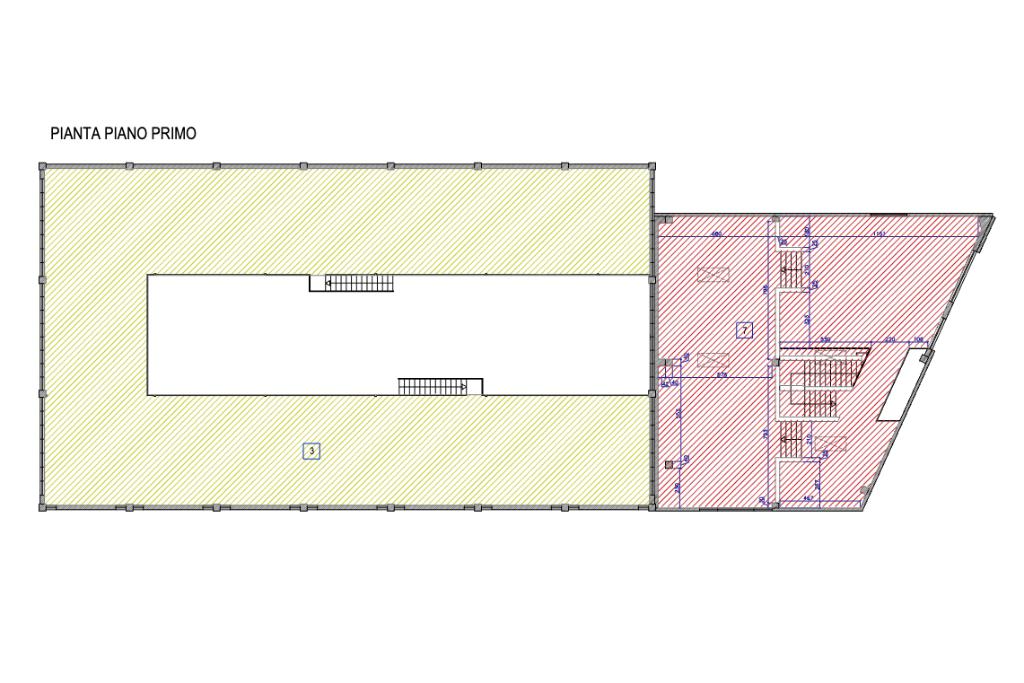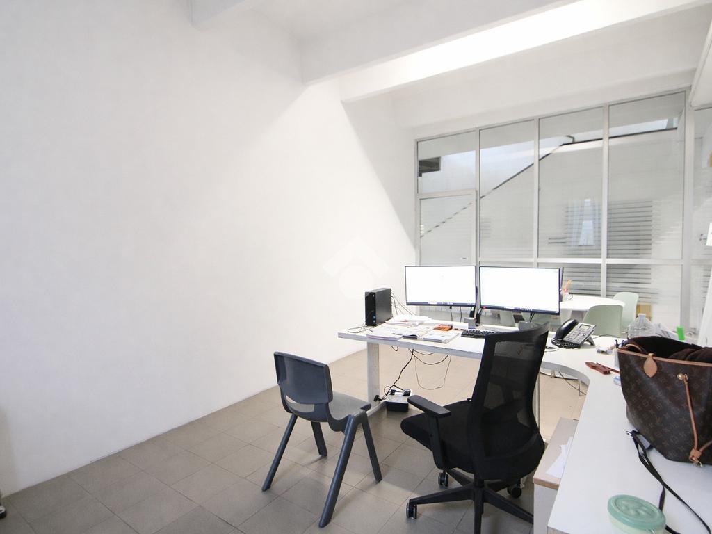 L’ingresso principale conduce alla zona dedicata all’esposizione e alla vendita, con una piccola area adibita ad uffici, per una superficie complessiva di circa 210 mq e un’altezza di 3,10 m. Tramite le scale si accede al primo piano, dove si trova una seconda zona espositiva di circa 250 mq.