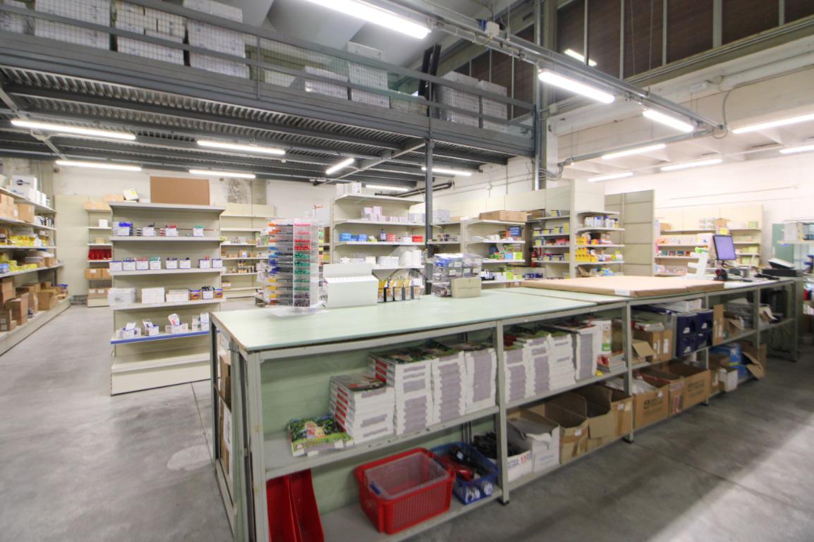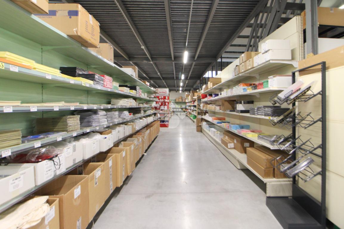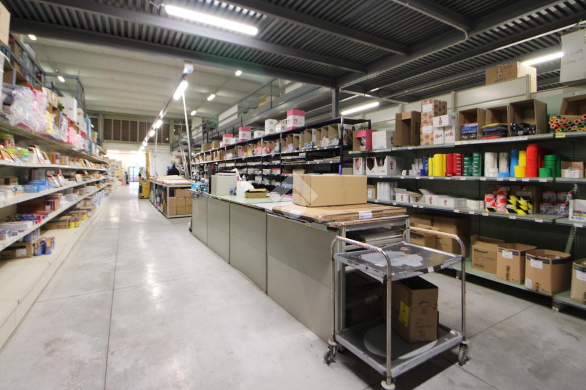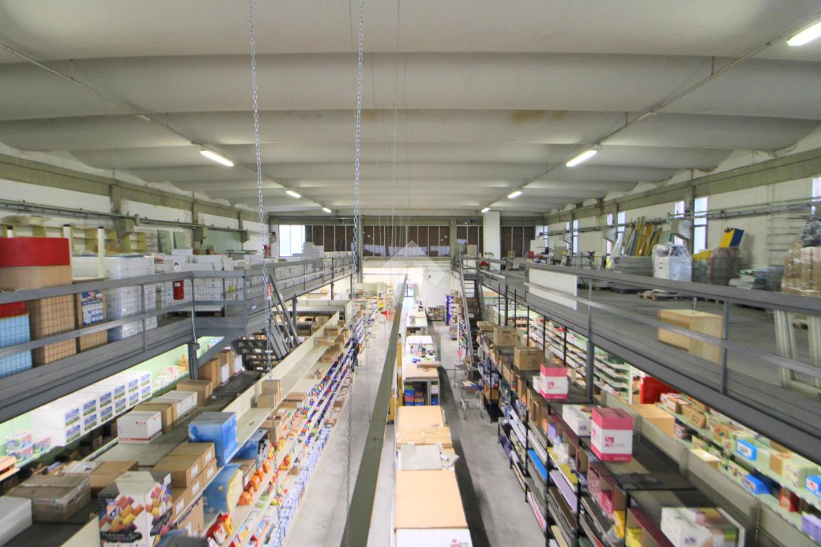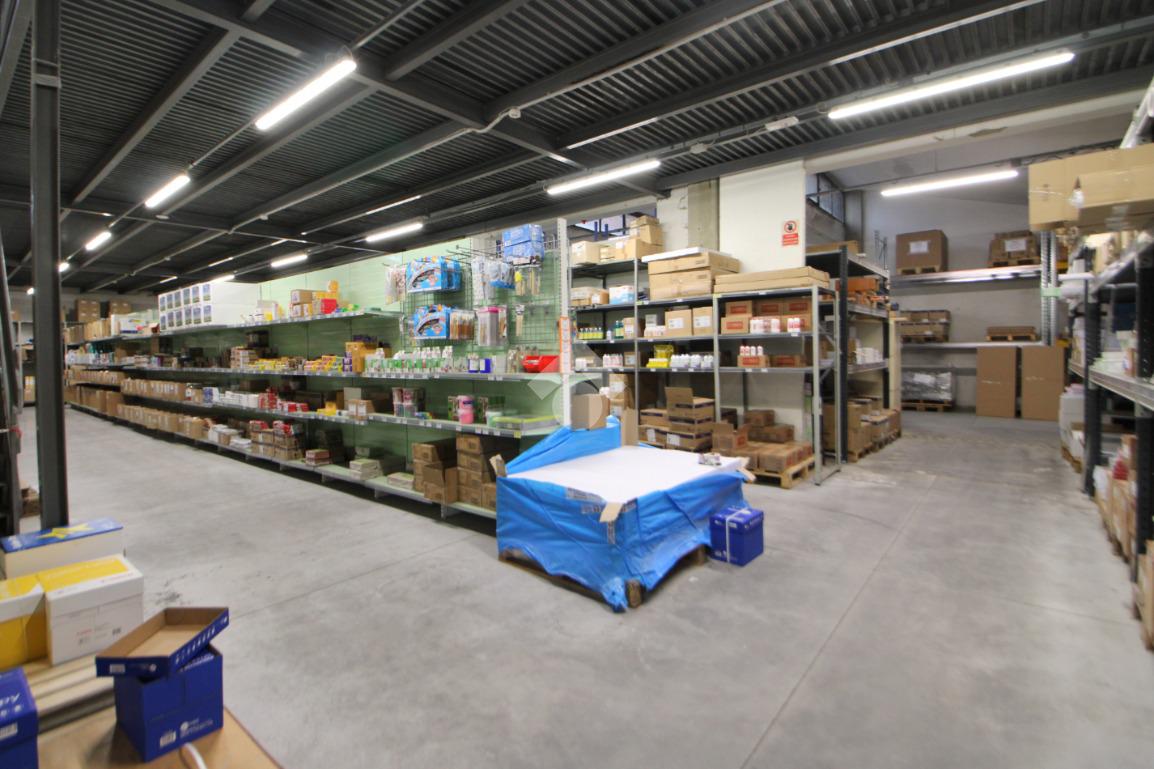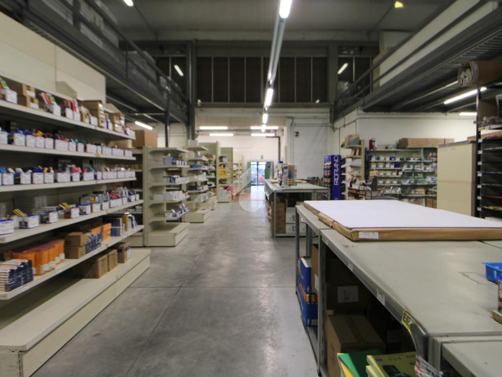 Proseguendo, al piano terra, troviamo un magazzino di circa 731 mq, con altezza massima al centro di 7,40 m, dotato di soppalco che offre un’ulteriore superficie di 480 mq alto 3,90 m, ideale per lo stoccaggio delle merci e di un portellone alto 4,40 m e largo 8,00 m, che facilita l’accesso ai bilici.