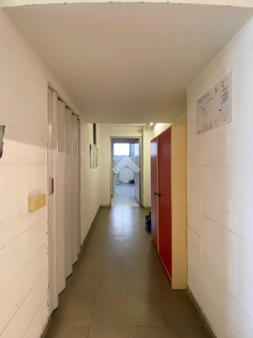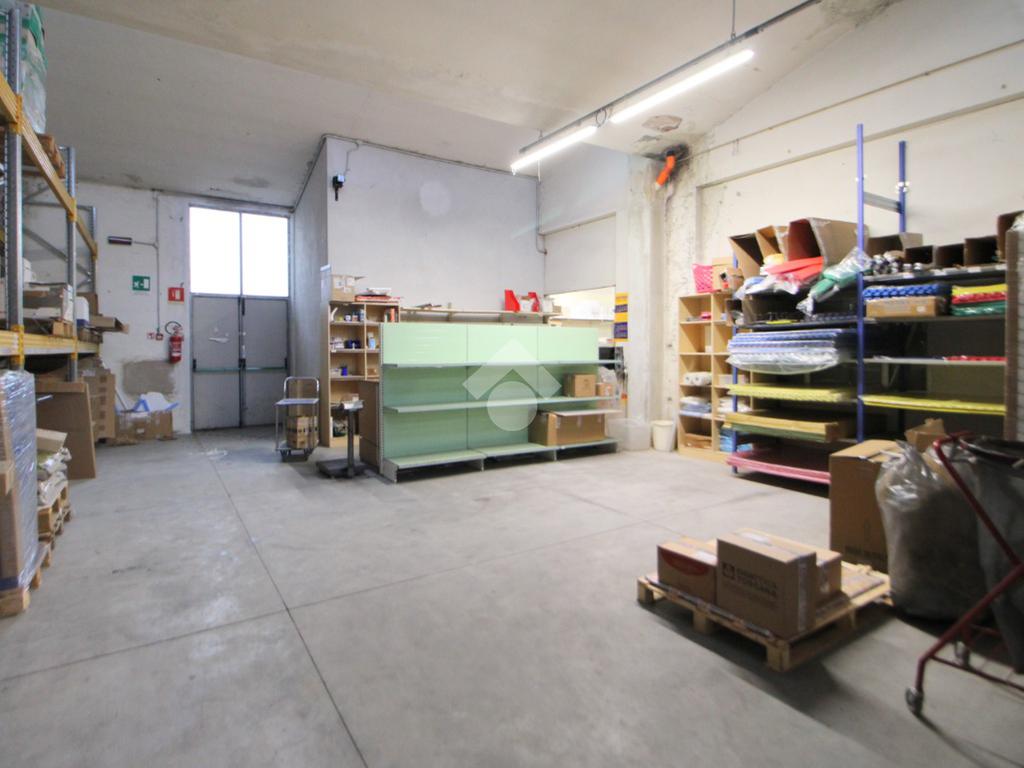 Sulla destra si accede al secondo magazzino di circa 280 mq, anch’esso completo di un portellone alto 2,90 m e largo 2,75 m.