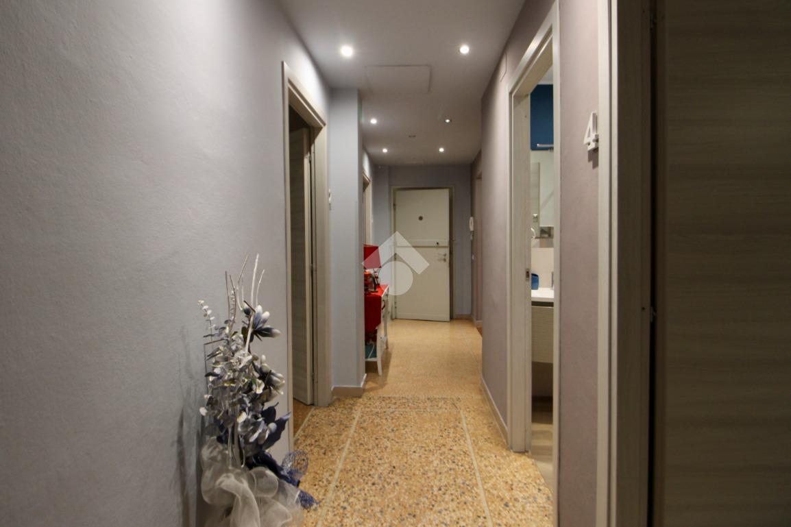 Attraverso l’ingresso si accede al corridoio che separa tutti gli ambienti.