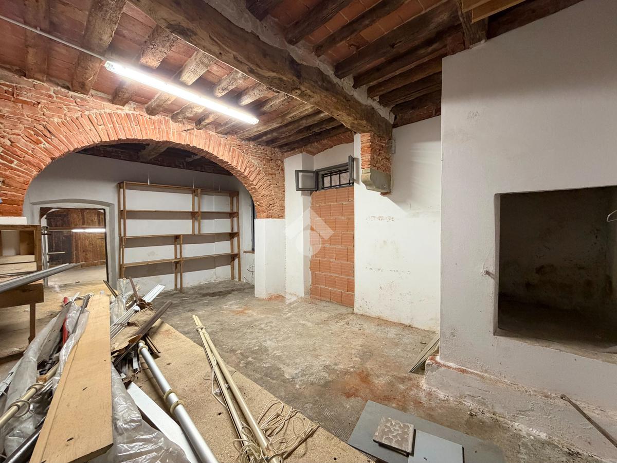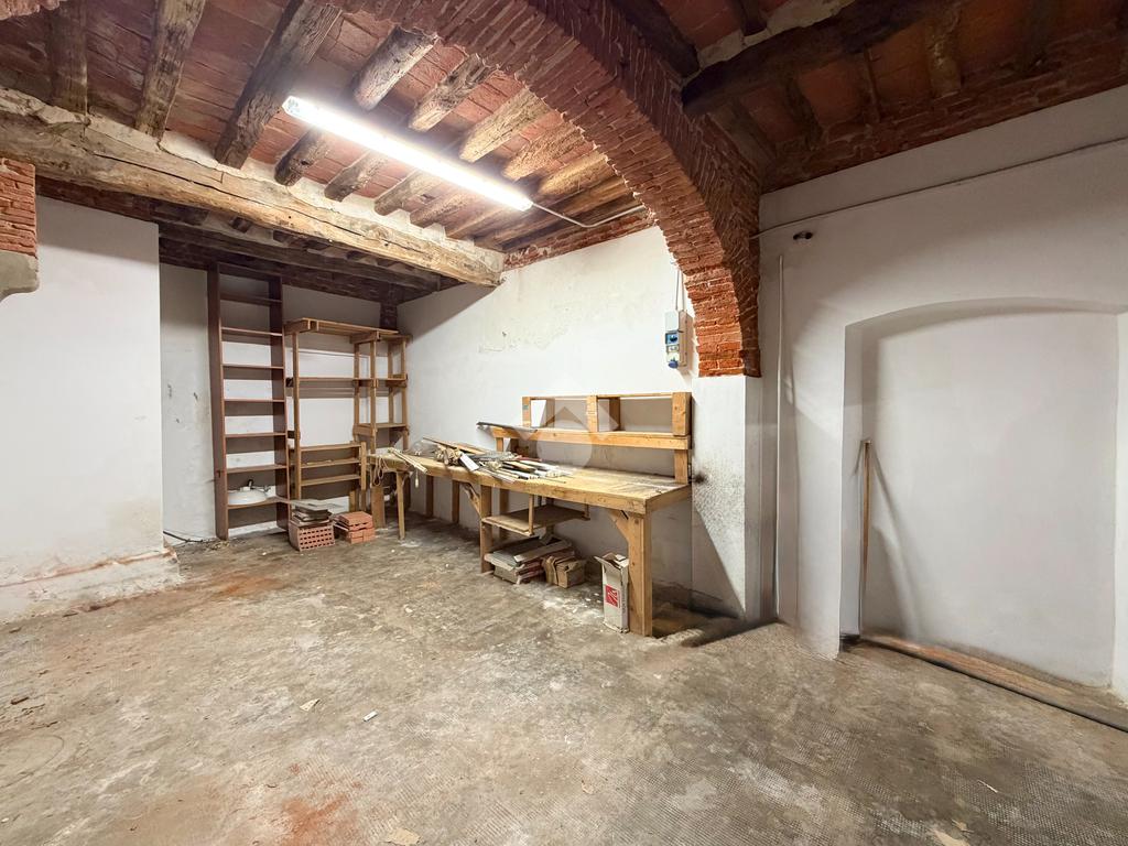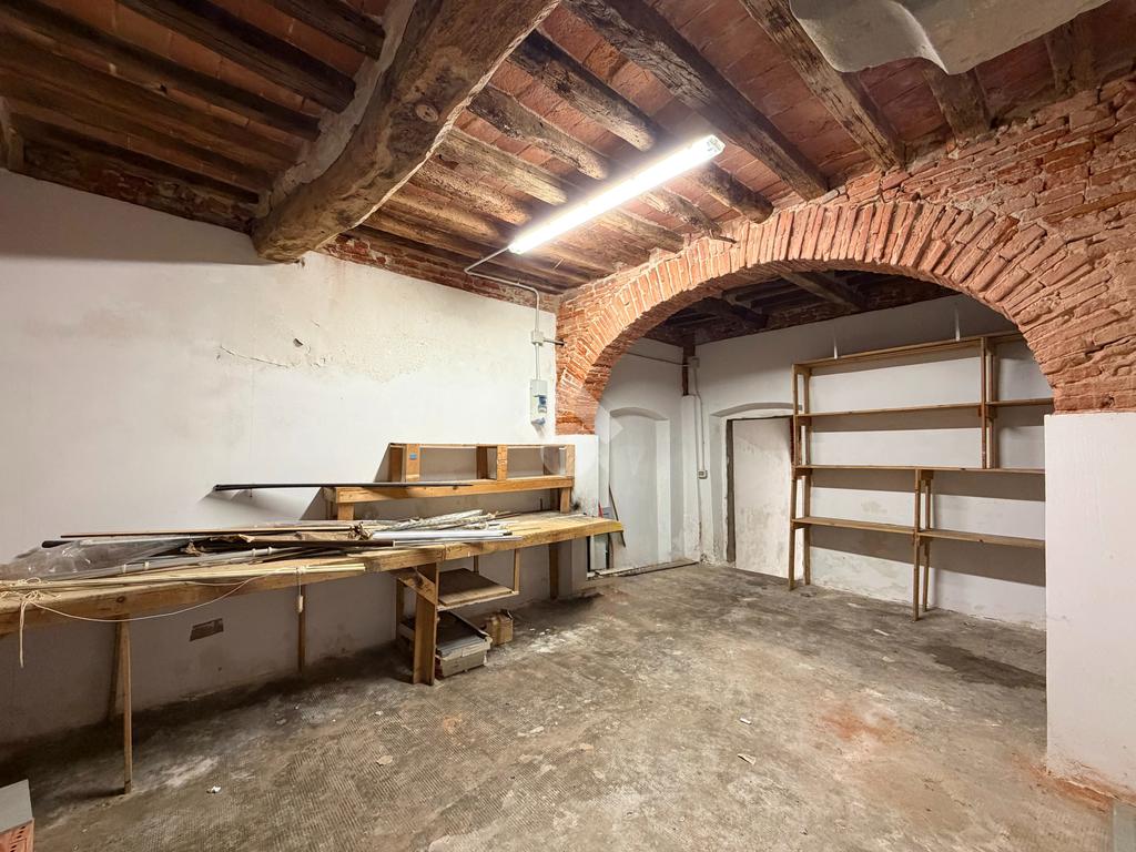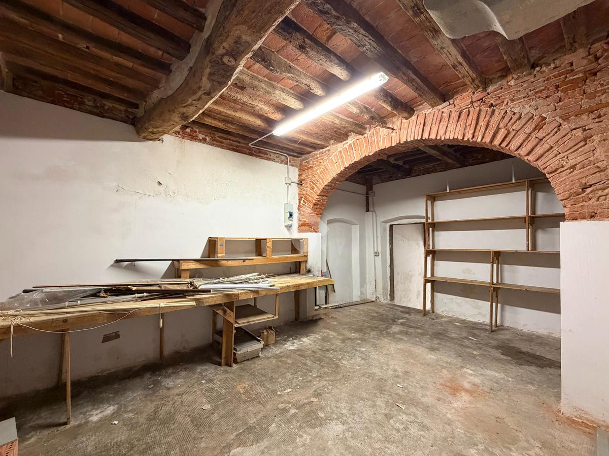 L’ingresso su una traversa di via Tavoleria ci accompagna nel locale principale di 25 mq, alto 2,97m, caratterizzato da storiche volte in pietra viva e travi a vista, restaurate e sabbiate.