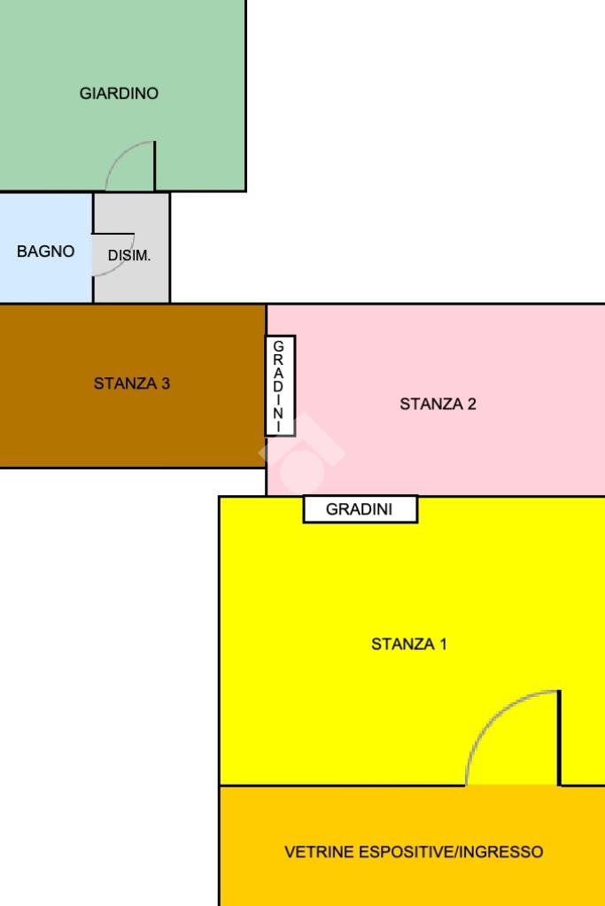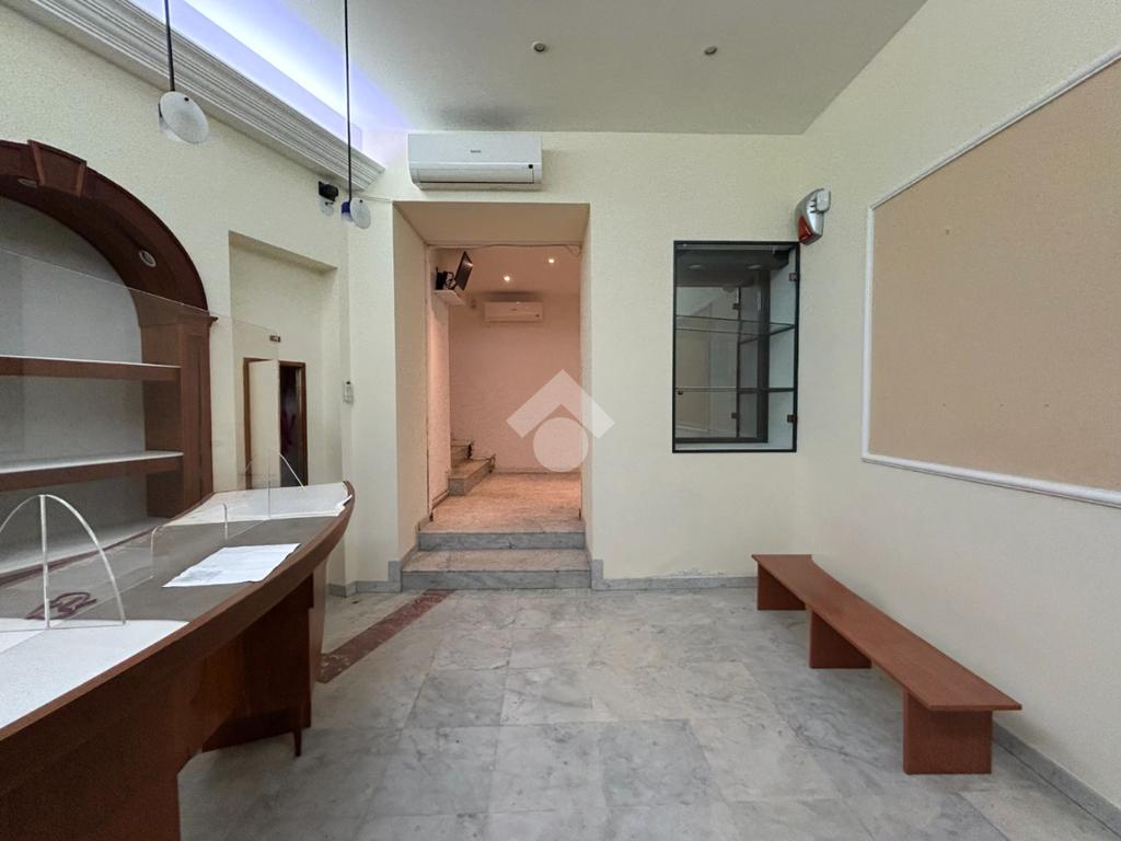Dall’ingresso si accede alla prima stanza di 25 mq, dotata di vetrina espositiva.