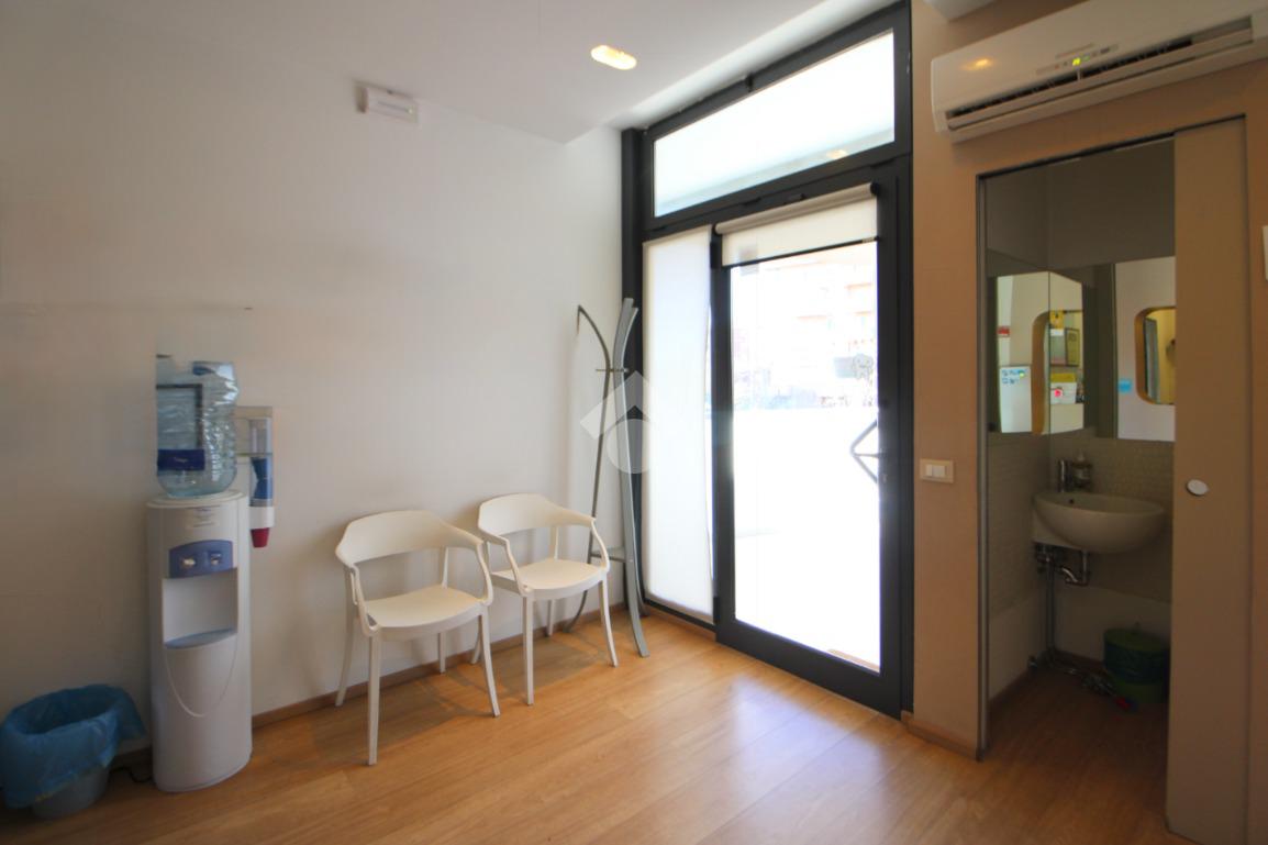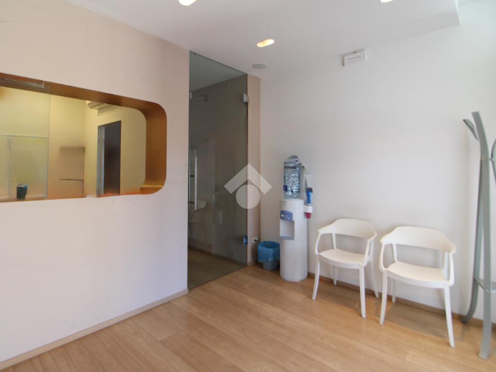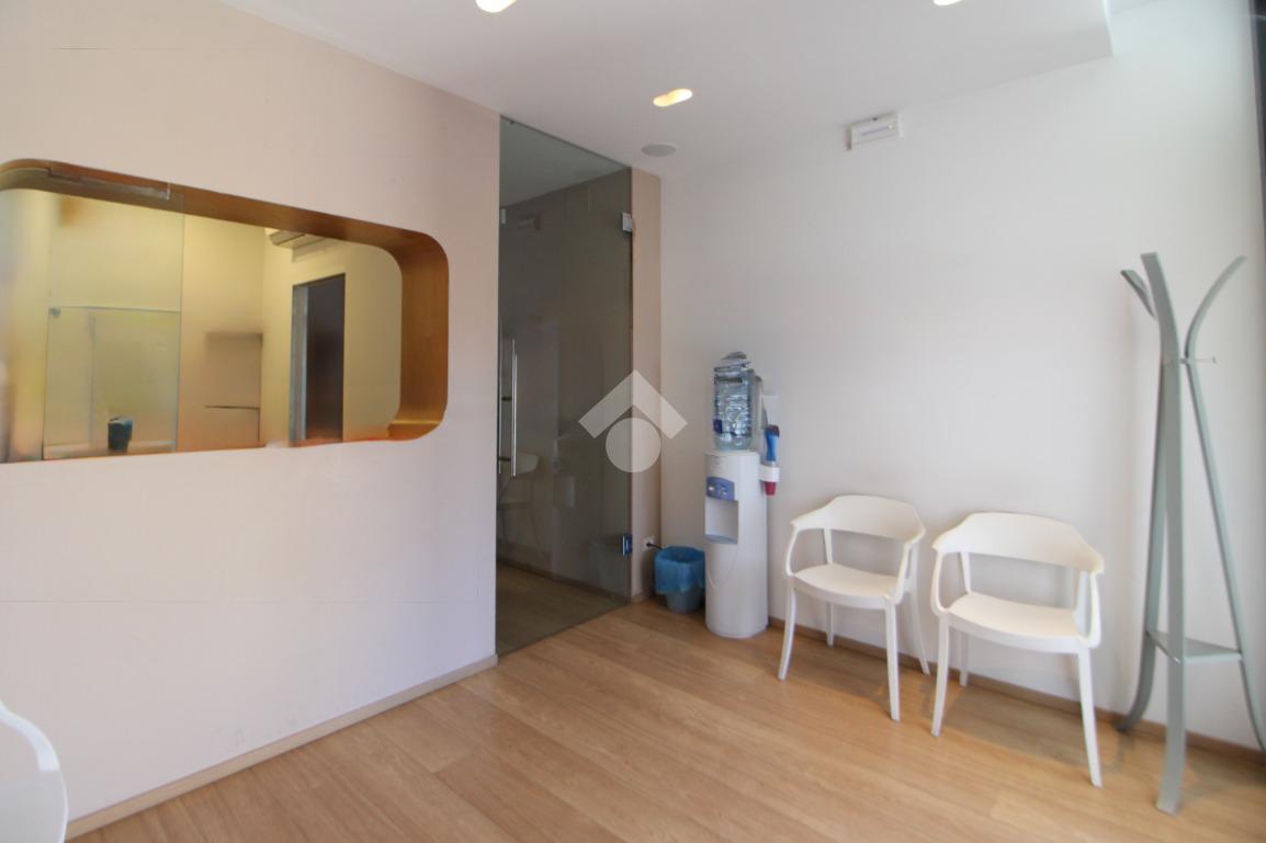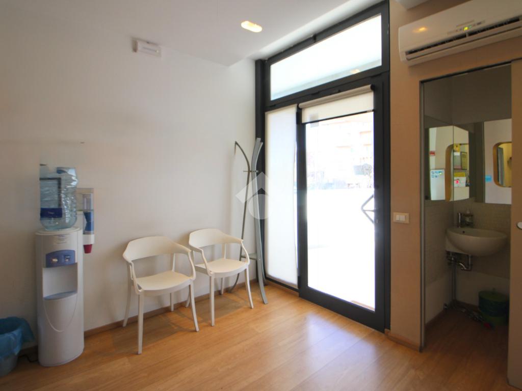 L’ingresso conduce a un primo ambiente di 12 mq, attualmente adibito a sala d’attesa, con spazio da utilizzare come accettazione.