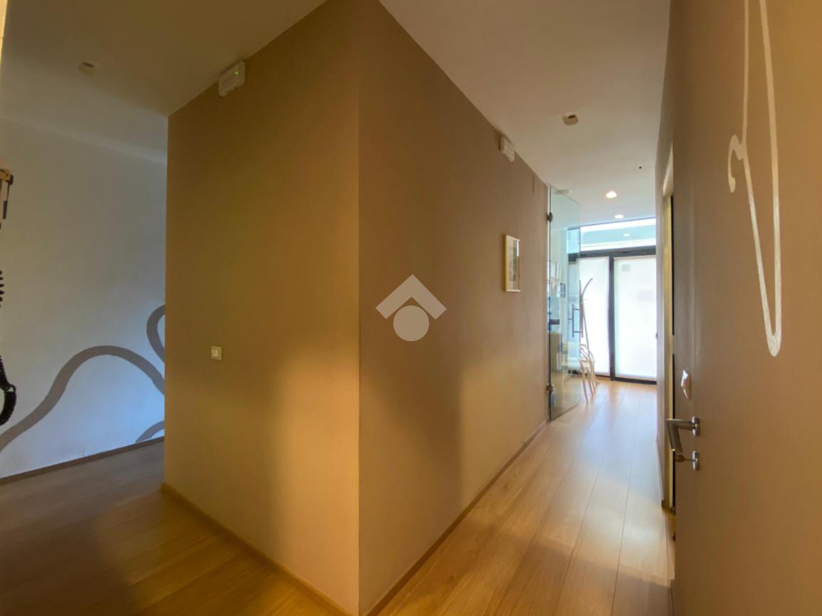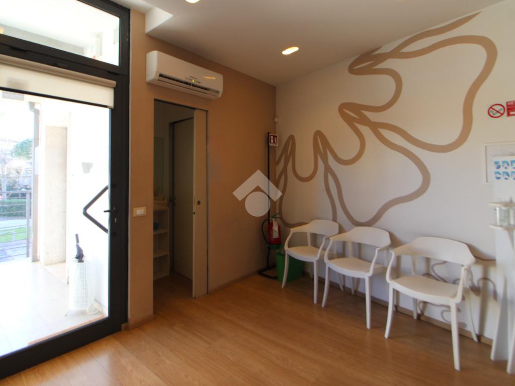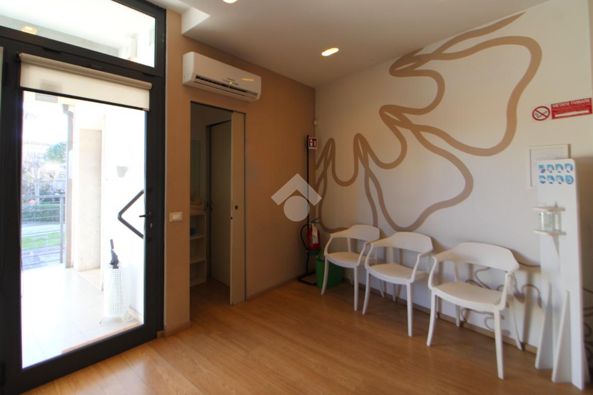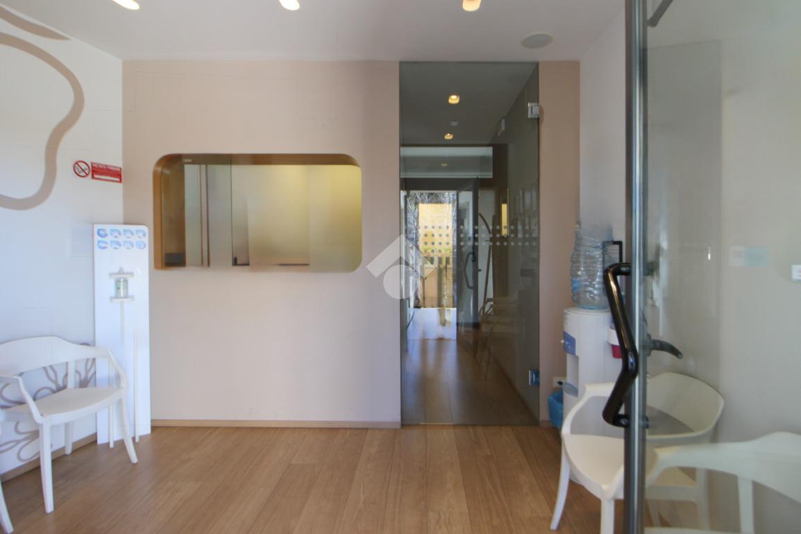 L’ingresso conduce a un primo ambiente di 12 mq, attualmente adibito a sala d’attesa, con spazio da utilizzare come accettazione.