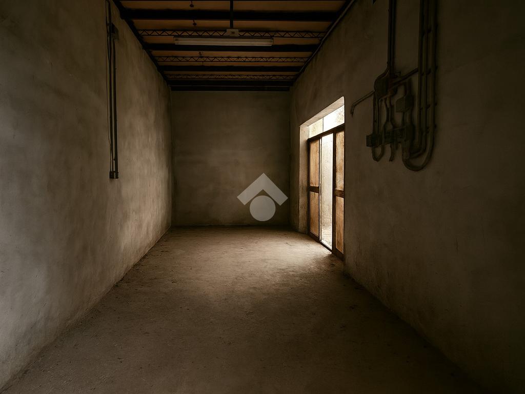 Attraverso il portellone idustriale si accede alla zona atigianale di 146 mq, priva di colonne e dotata di un'ufficio finestrato.