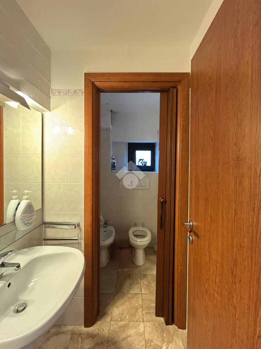 Completano la soluzione i bagni posti in entrambe le unità e il piazzale di circa 160 mq.