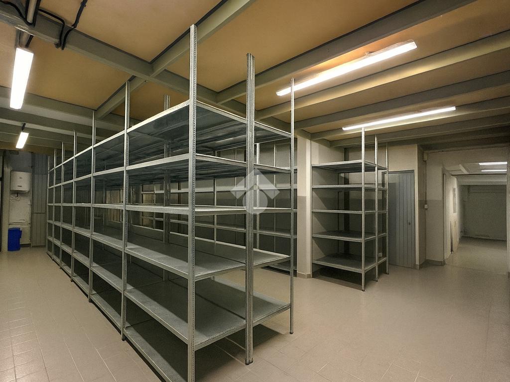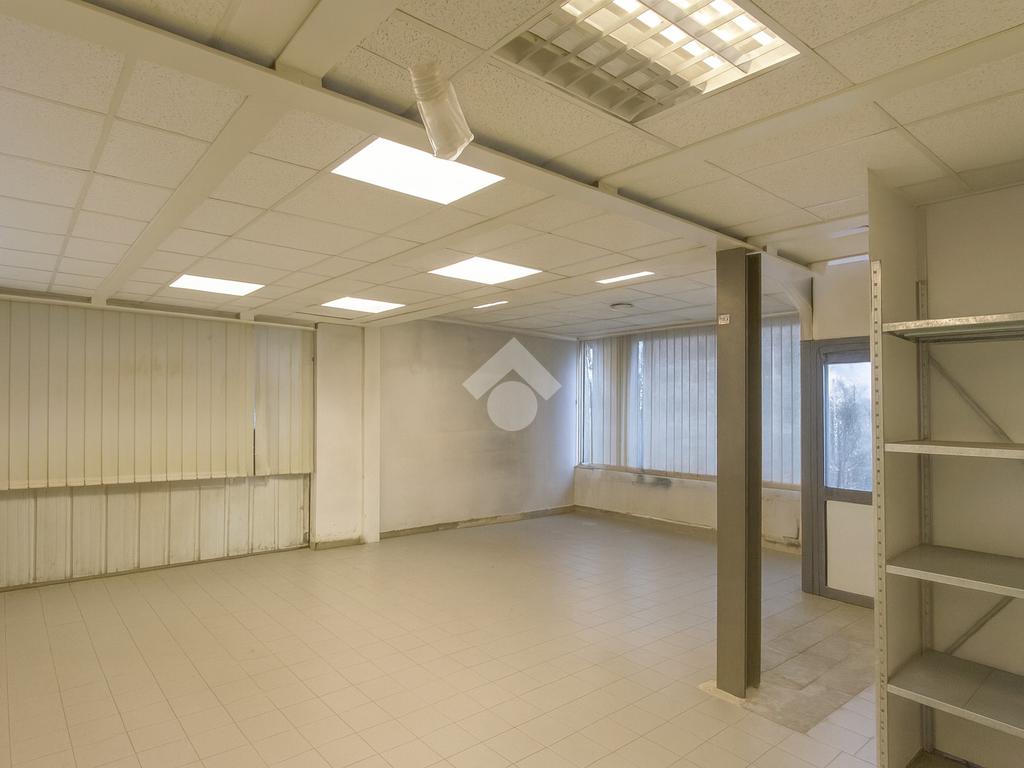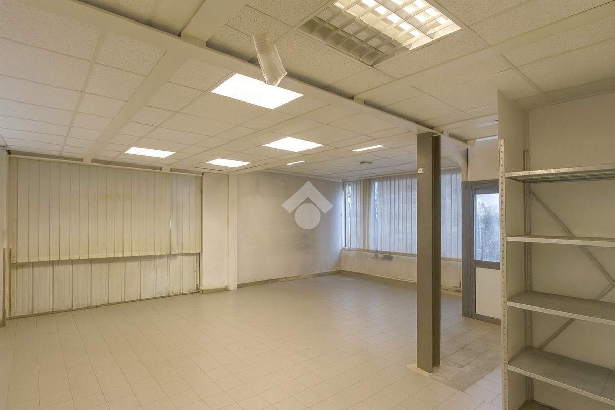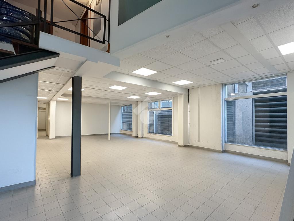 Dal primo ingresso, dotato di vetrina fronte strada, accediamo alla prima porzione composta da un ampio open-space dotato di ufficio e di un magazzino completo di portellone industriale.