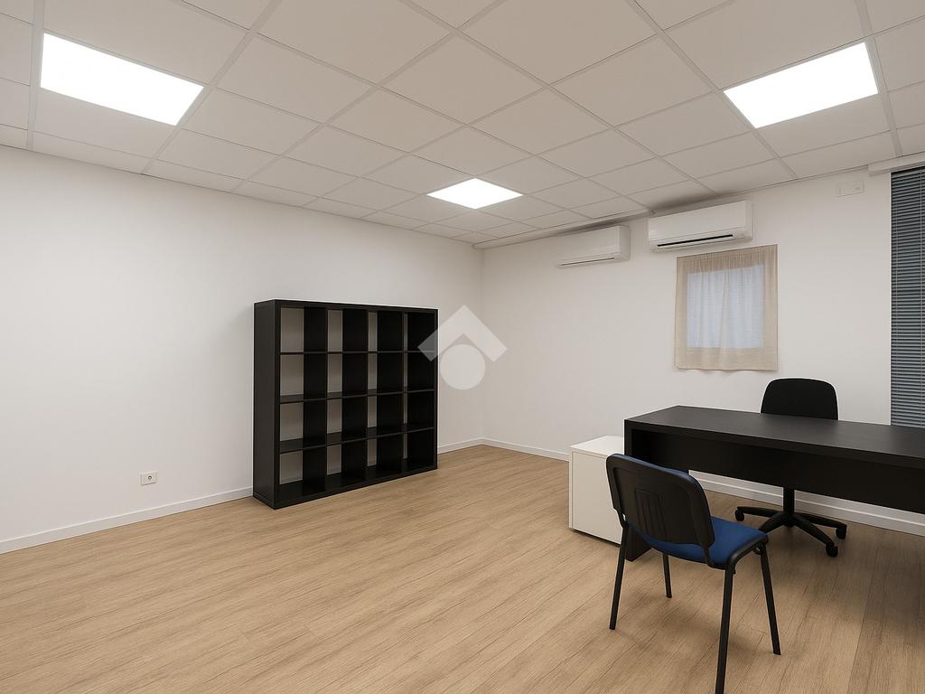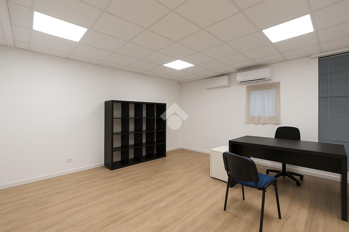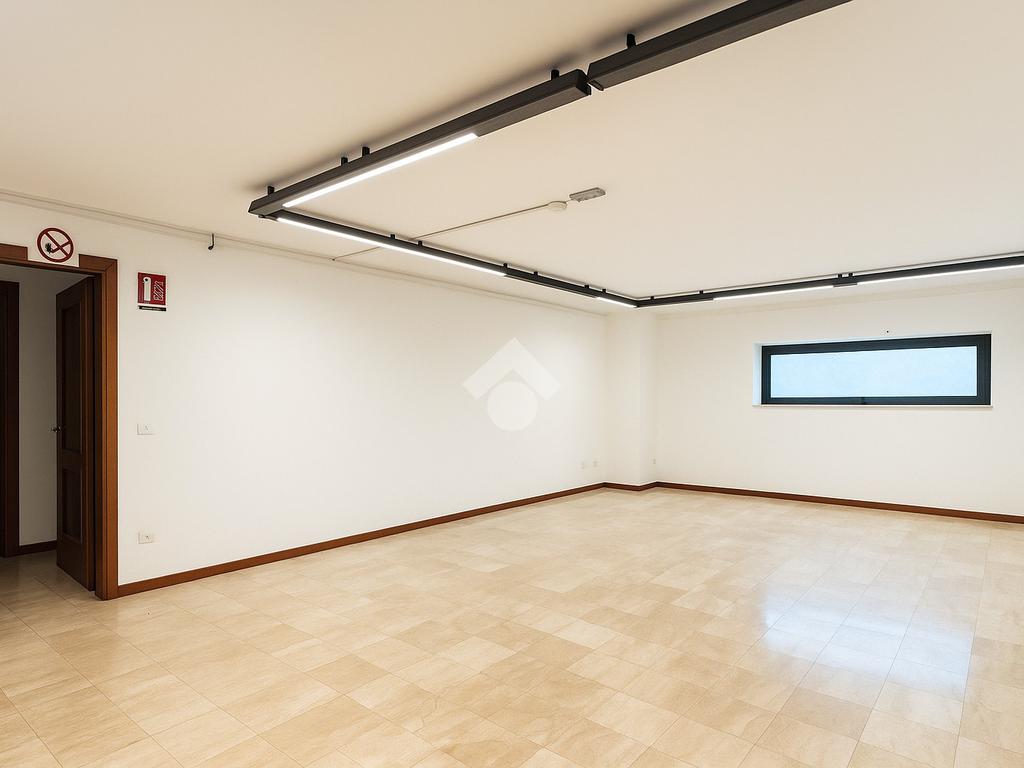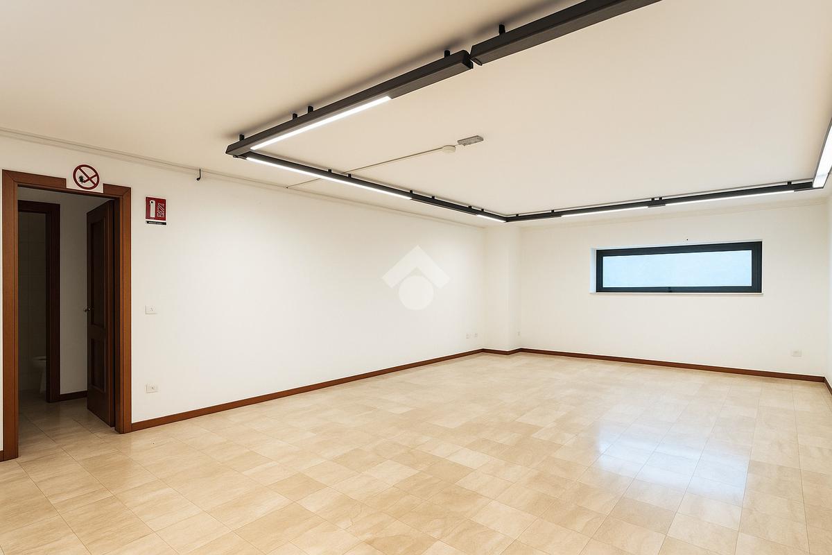 Dal primo ingresso, dotato di vetrina fronte strada, accediamo alla prima porzione composta da un ampio open-space dotato di ufficio e di un magazzino completo di portellone industriale.